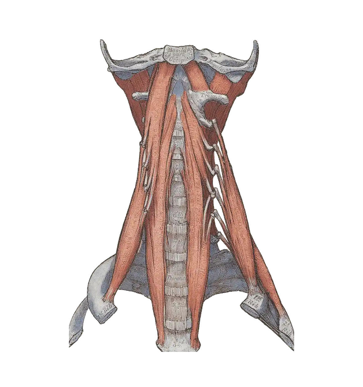 Whiplash can chronically lock the deep stabilizing muscles like longus colli, which require advanced training to release safely and effectively. Anatomy Plate (Gray’s, 1918)