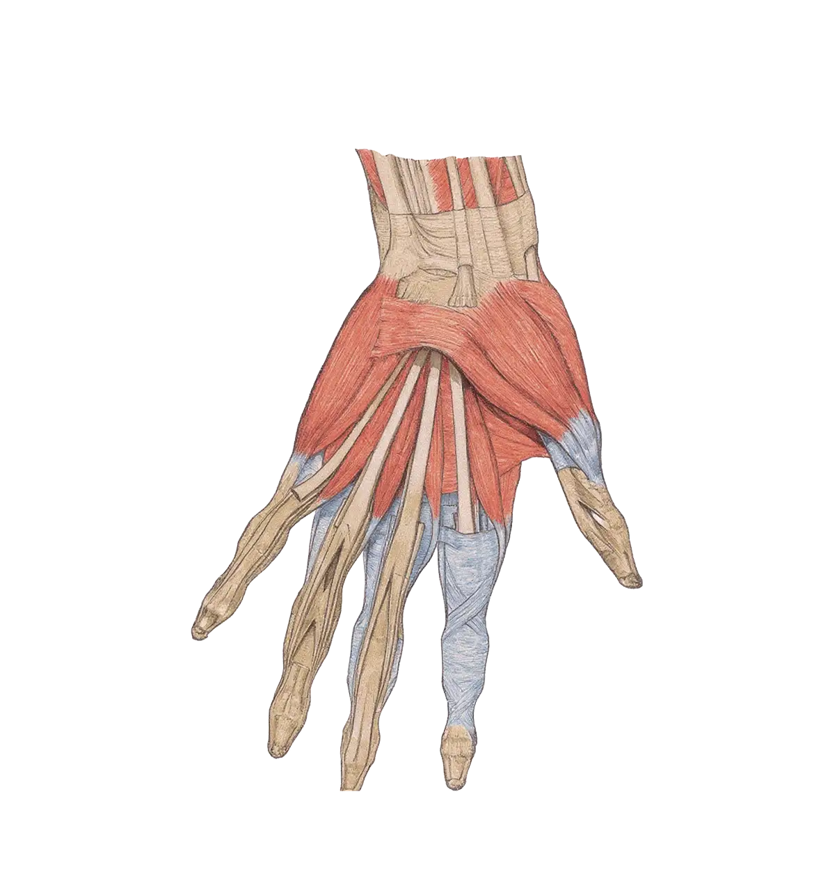 Wrist and hand pain often has upstream contributors in the shoulder, ribs, neck, and forearm which can leave the small intrinsic hand muscles chronically overworked. Anatomy Plate (Gray’s, 1918)